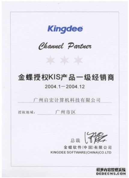 近日,经过金蝶软件(中国)有限公司广州分公司的友好协商与评审,启宏科技成为金蝶KIS产品的一级经销商,双方签署了经销合作协议。